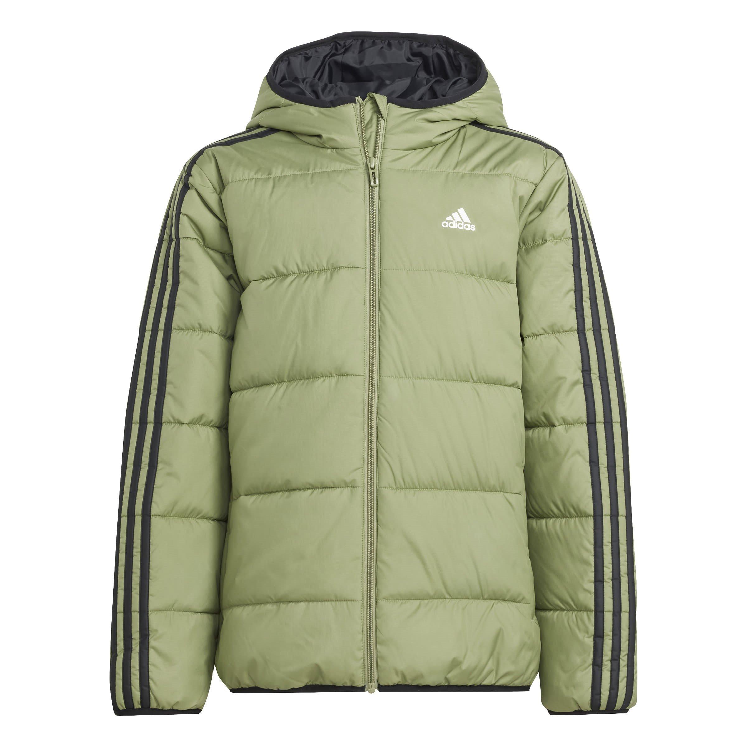 Hold dine børn varme i adidas Unisex Kids Essentials 3S Hooded Puffer Jacket. Denne quiltede yderjakke tilbyder praktisk varme med klassisk stil, der har de tre striber langs ærmerne og adidas-logoet på brystet. Den lette fyldning og de elastiske kanter giver komfort uden at begrænse bevægelsen.