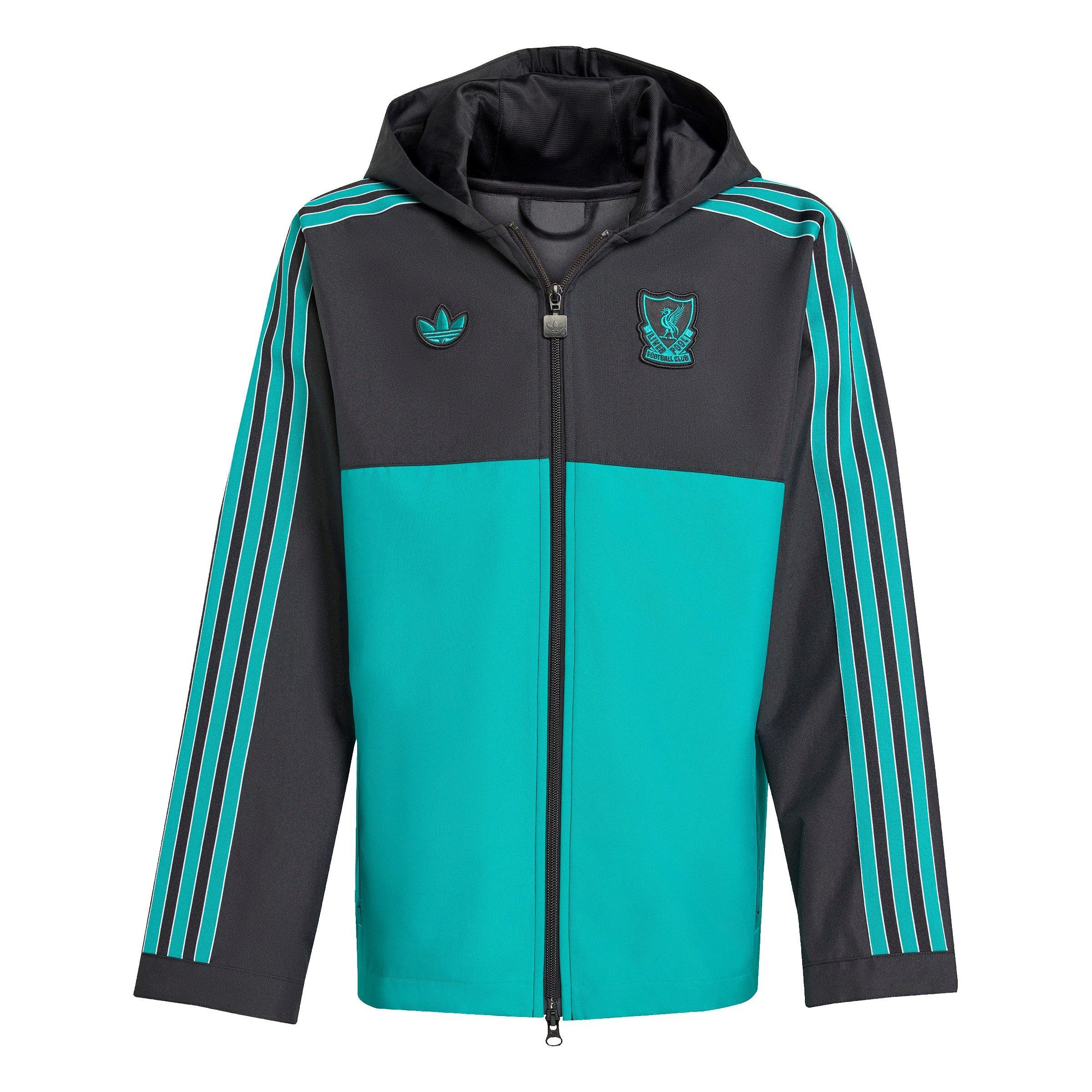 adidas Kids' Terrace Liverpool Langærmet Licenseret Regn Anorak trækker inspiration fra 80'ernes terrassekultur for klassisk stil. Denne børnejakke har et vandafvisende design med vandtæt beskyttelse, hvilket gør den til en ideel regnjakke for unge fans, og denne løstsiddende anorak viser Trefoil og Liverpool-holdmærket på brystet for autentisk kampdagsappel.