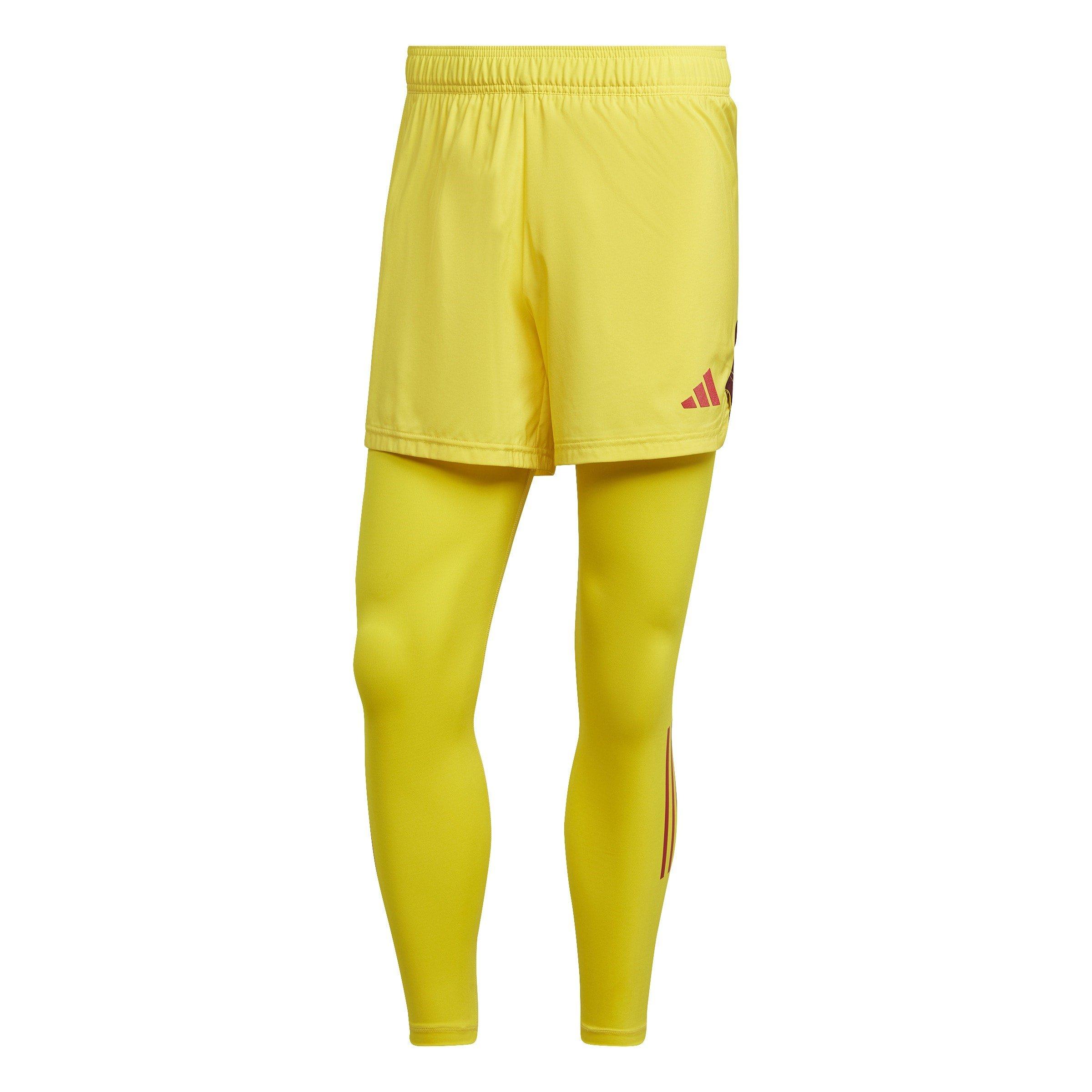 Hold dig klar til enhver skud og afbøjning, der kommer mellem dig og målet med adidas' Tiro 23 Pro Målmandstights. Dette farverige par kommer med fastgjorte shorts og er lavet af strækbart materiale, der bevæger sig med dig, når du dykker, glider eller skyder den lange pasning for at få angrebet i gang.