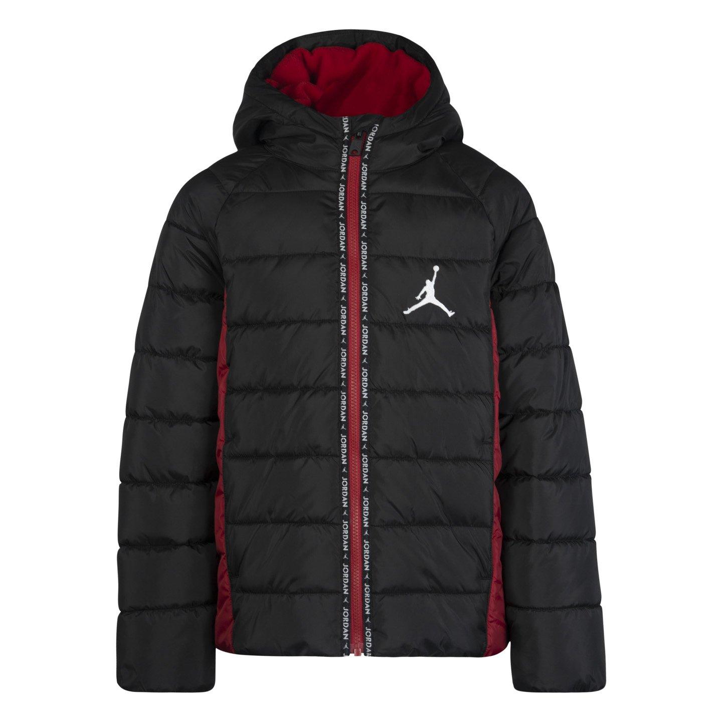 Kids' Langærmet pufferjakke fra Air Jordan holder børn varme med et rent, atletisk look. Dette regular-fit ungdoms ydertøj design har en praktisk hætte, fuld lynlås og to lommer for bekvemmelighed, mens den lette polstring hjælper med at isolere uden at tilføje bulk til denne juniorjakke.