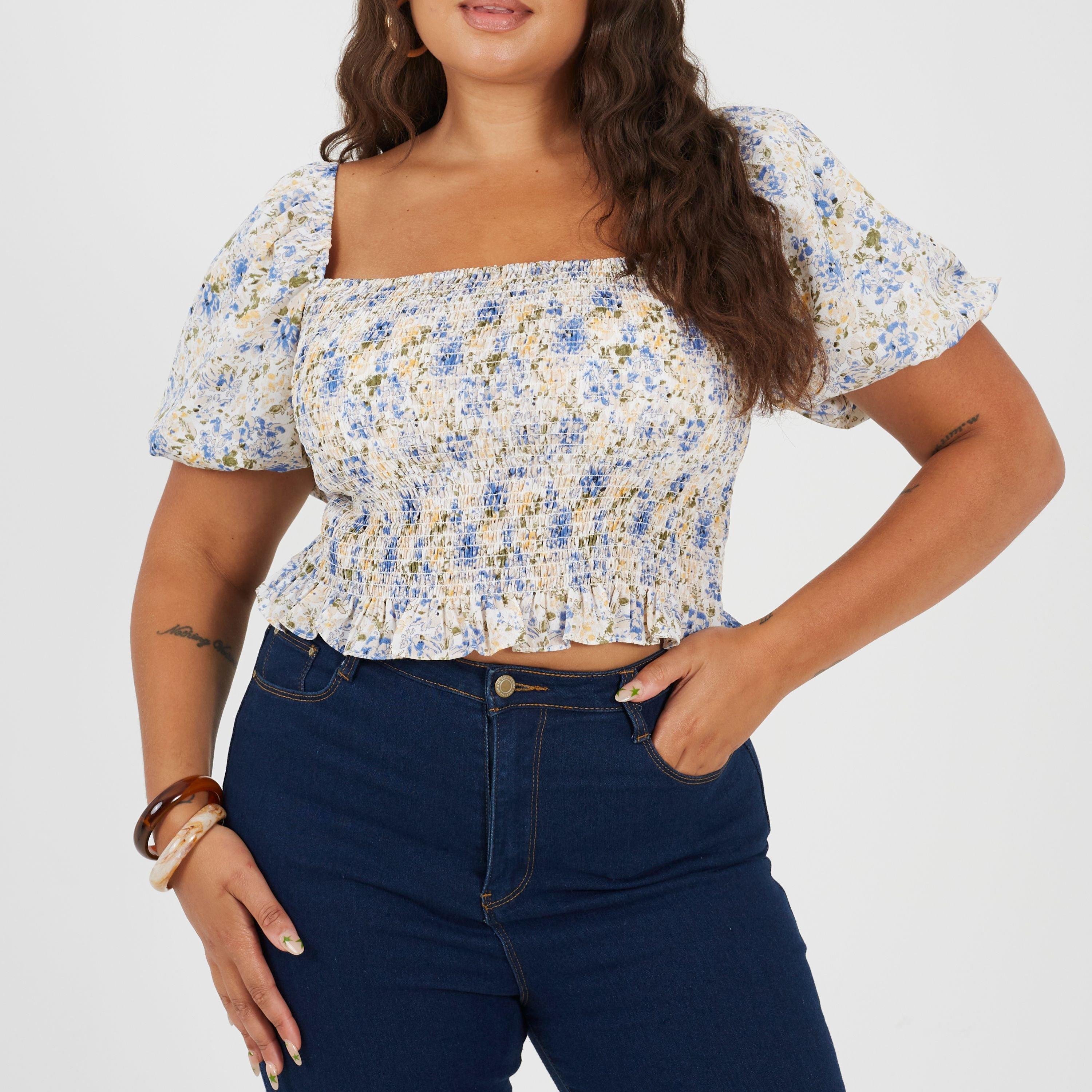 Brave Soul Plus Size Womens Puff Sleeve Top with Ruched and Tie Details.