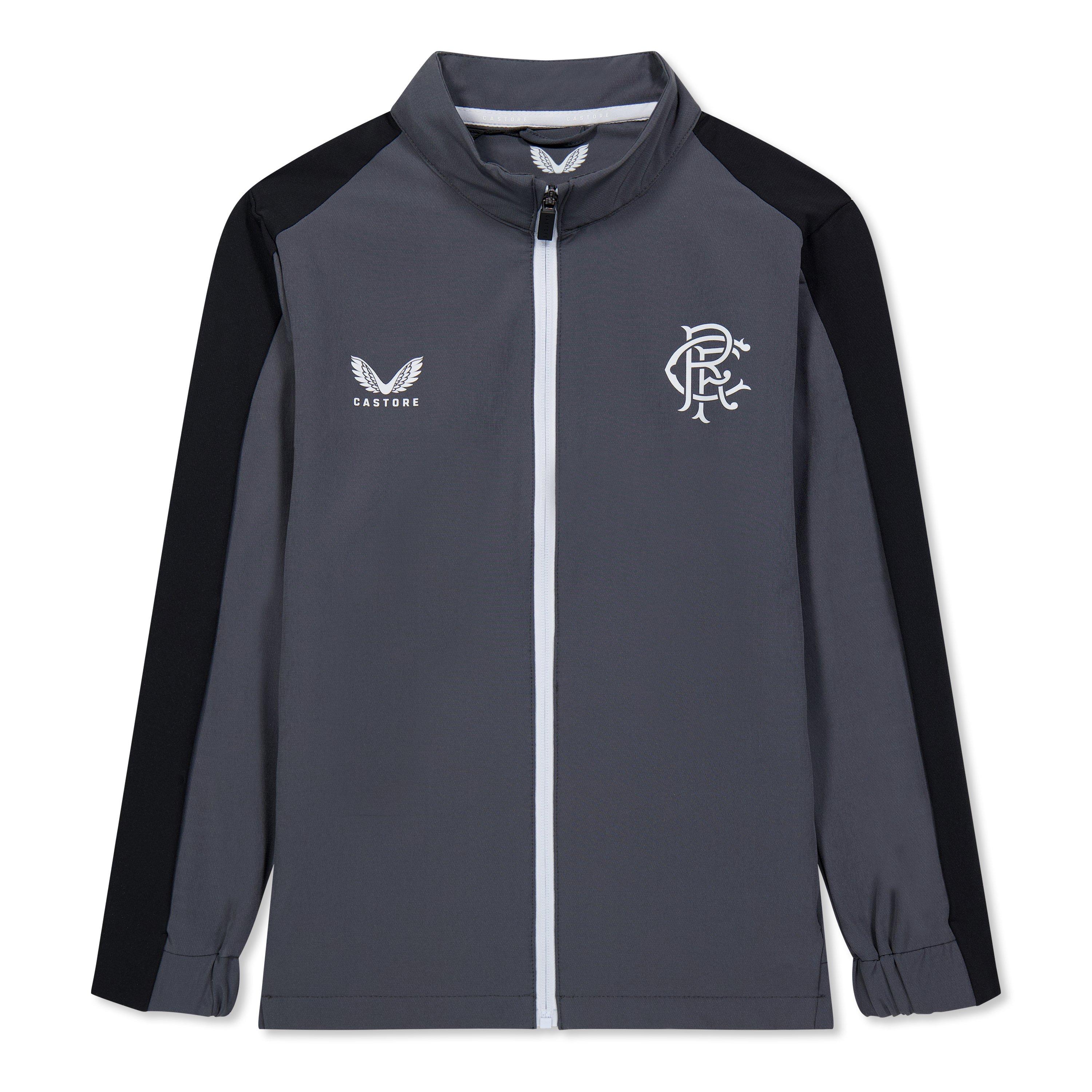 Rangers Vandtæt Licenseret Regn Anorak jakken fra Castore tilbyder praktisk beskyttelse mod vejret med moderne styling. Den har et halv-zip pullover design med elastiske manchetter og en justerbar hætte, og dette lette overtøj holder unge fans tørre, mens de viser holdstolthed.