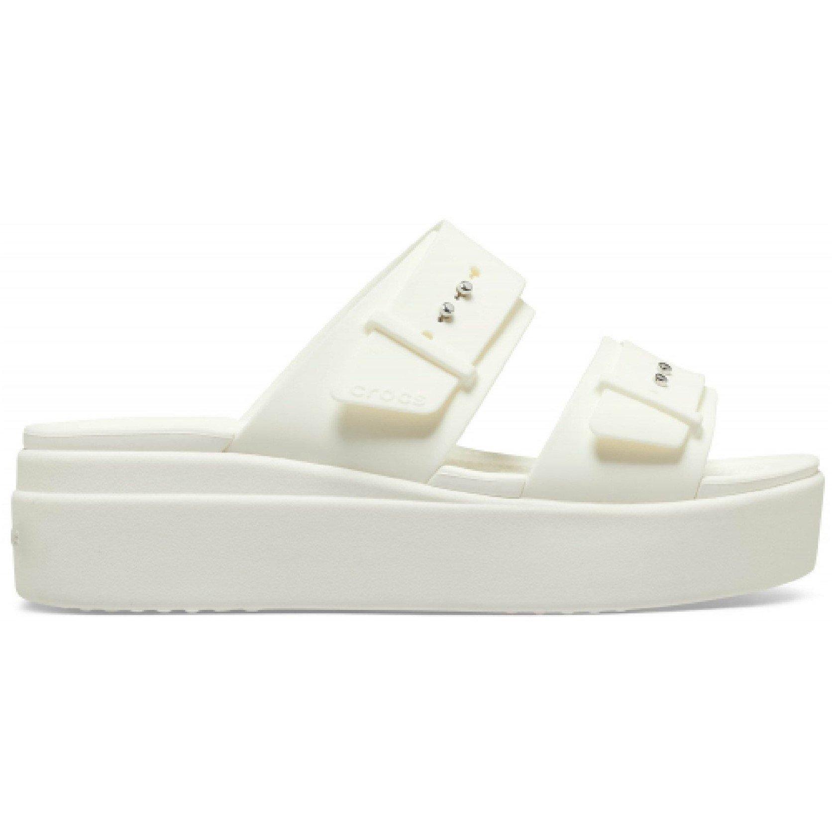 Crocs Women's Brooklyn Buckle Wedge Heeled Sandaler tilbyder stil og komfort. Disse afslappede, fritidsklare wedges har en sikker spænde-lukning og Crocs-design, der tilbyder højde med stabilitet til daglig brug.