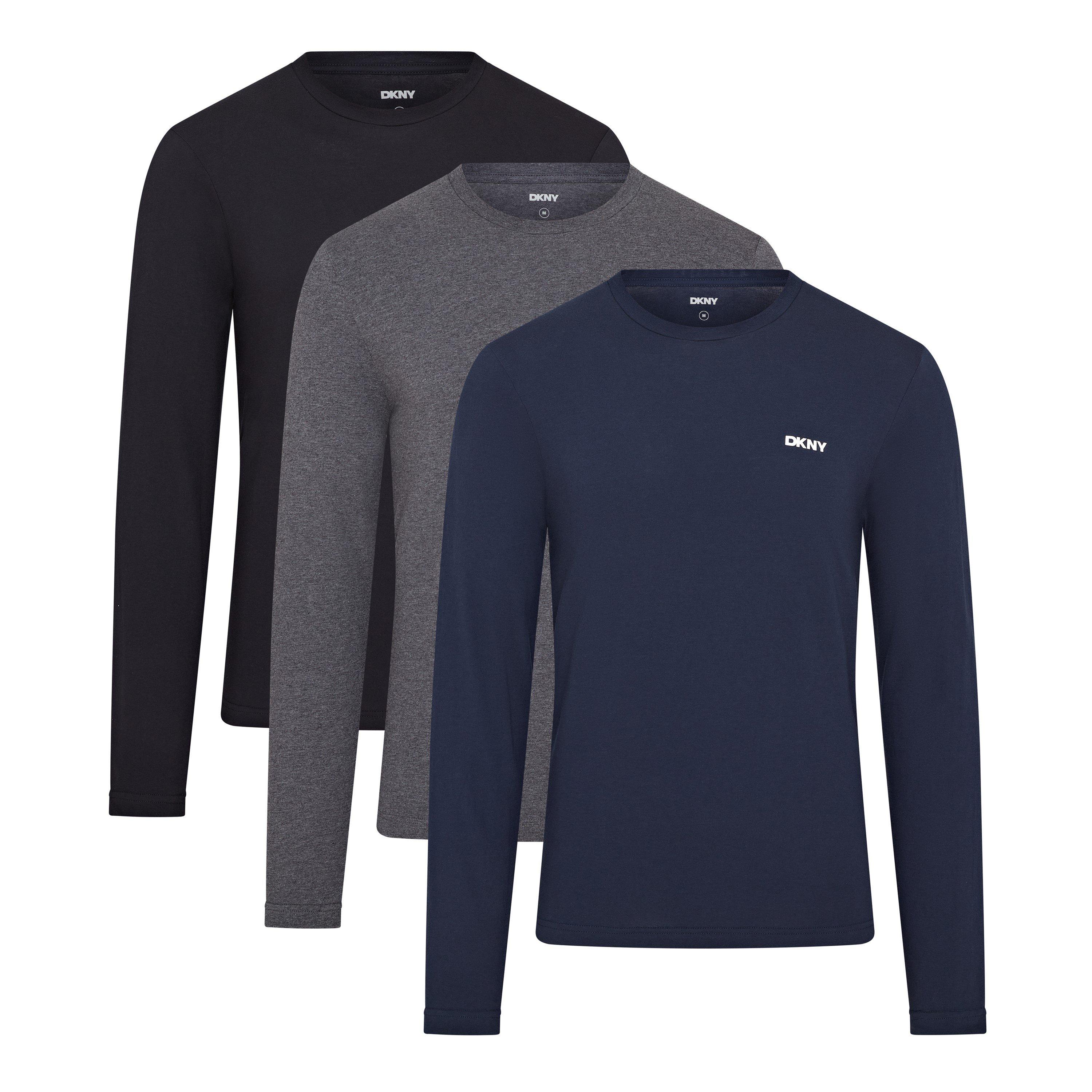 Opdater dine garderobestandarder med DKNY Men’s 3-Pack Langærmede T-Shirts - et alsidigt must-have, der kombinerer komfort, kvalitet og moderne DKNY stil. Fremstillet af et blødt bomuldsstof, tilbyder disse t-shirts en åndbar, glat fornemmelse med en flatterende regular fit. Perfekt til lagdeling eller at bære alene, giver de en ubesværet stil til arbejde, weekender eller afslapning. Hver pakke inkluderer tre tidløse farver, afsluttet med subtile DKNY logo detaljer for et premium touch.
