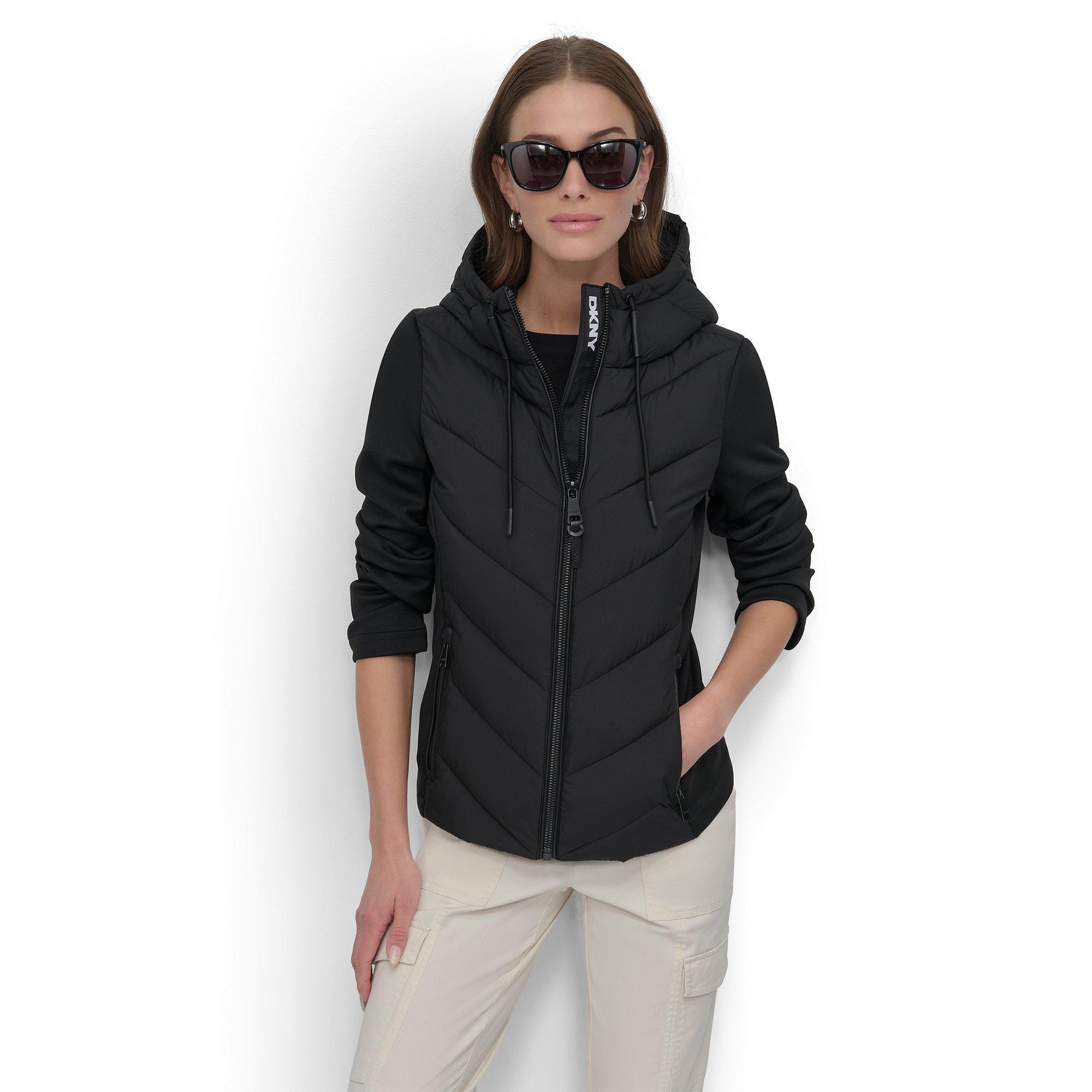 DKNY's Multi-Purpose Hybrid Jacket tilbyder slank urban stil og beskyttelse mod skiftende vejr. Den strømlinede form fremhæver moderne detaljer hele vejen igennem, hvilket skaber et skarpt look. Dens design tilpasser sig nemt til forskellige forhold, alt imens det bevarer brandets velkendte metropollook.