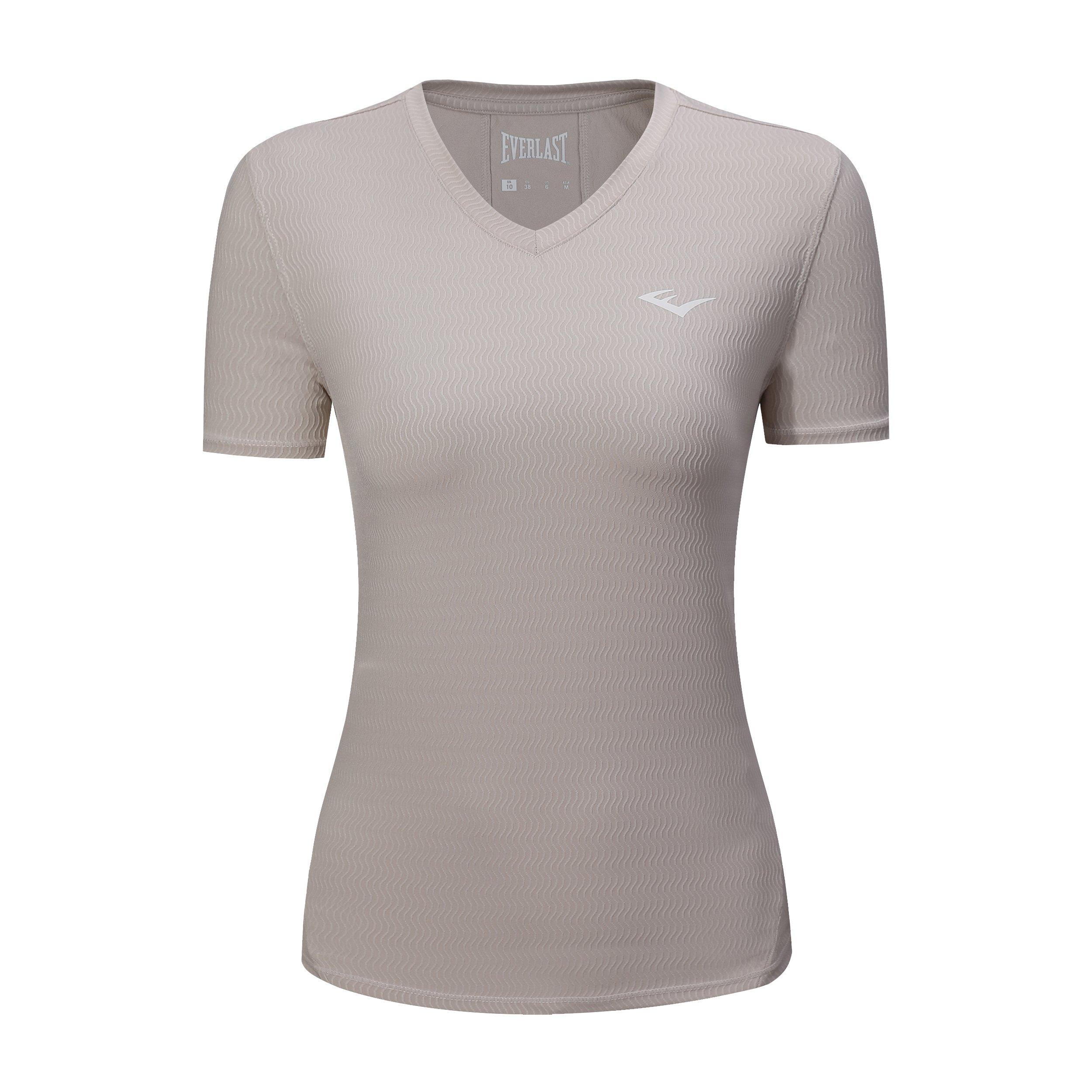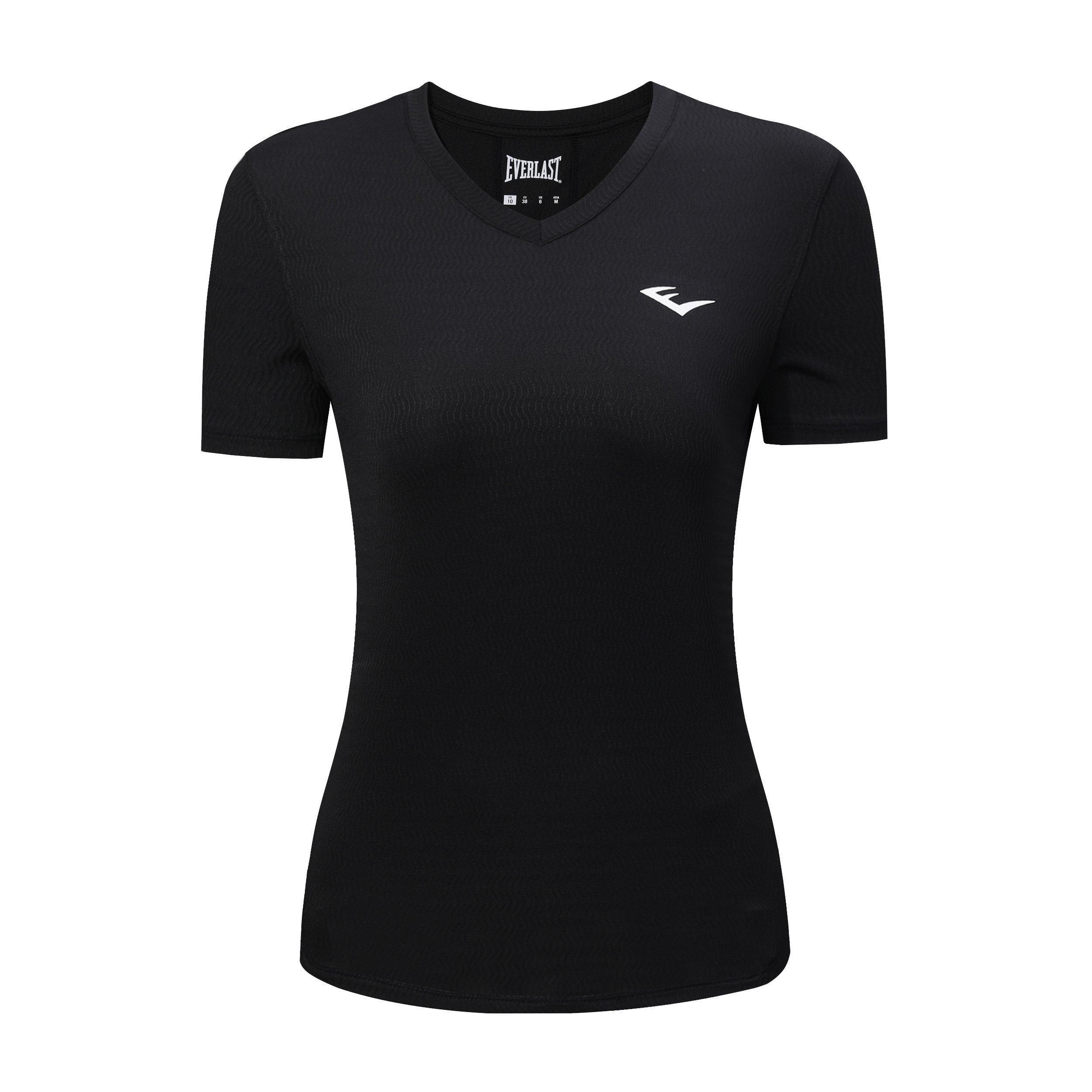 Everlast™ V Neck T-Shirt. Striking to a lightweight TEXTURE polyester fabric with features sweat-wicking, keeping you cool and comfortable with its breathable appeal. And the special water ripple TEXTURE fabric make you different from normal styling, this sporty silhouette is perfect for your summer workouts. Designed Everlast branding on the chest for a distinctive finish.