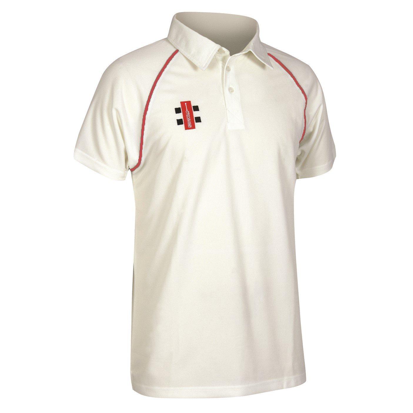 Grey Nicolls' kortærmet cricket skjorte har klassisk stil med præstationsstof, der giver børn og unge spillere bevægelsesfrihed med traditionelle cricketæstetik. Denne unisex junior cricket top balancerer sportslig funktion med rene, traditionelle linjer, hvilket gør den ideel som cricketuniform.
