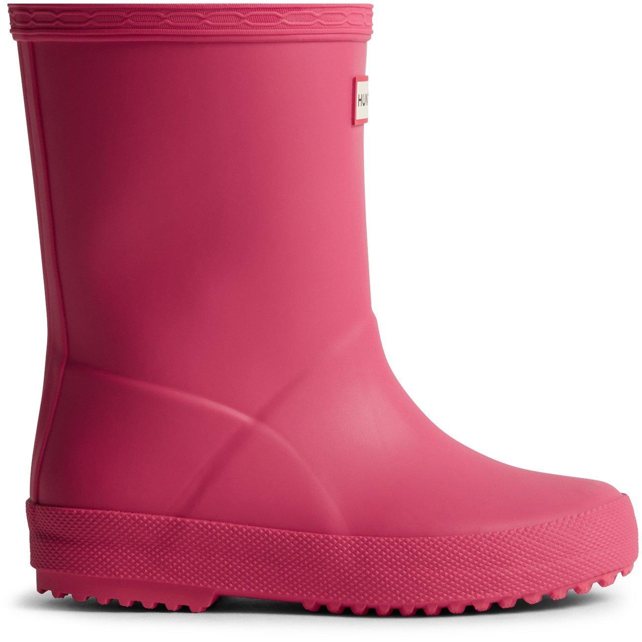 Hunter Børns Første Gummistøvler giver klassisk beskyttelse på regnvejrsdage, tilpasset små opdagere. Disse gummistøvler har den velkendte Hunter-form med en holdbar vandtæt konstruktion, der gør vandpyt-spring til både praktiske og fashionable eventyr. Lette træk-håndtag hjælper små hænder med at mestre selvstændig påklædning.