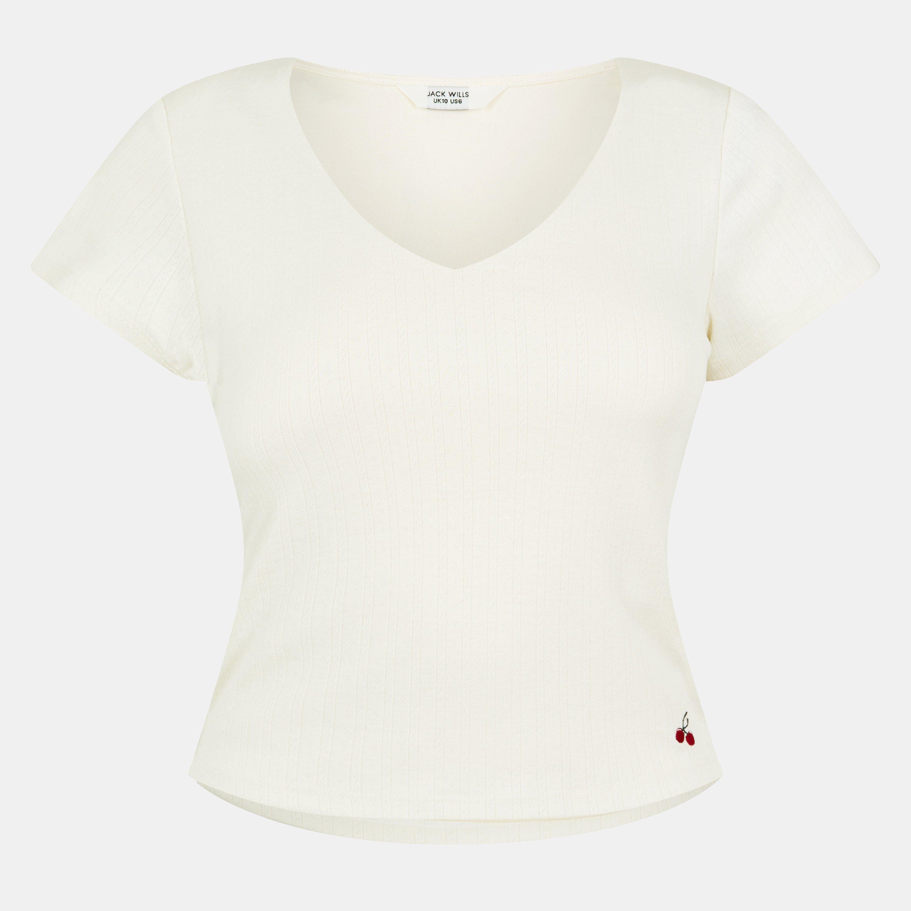 JW Pointelle Crop Top fra Jack Wills har pointelle tekstureret detaljering i en cropped stil, hvilket skaber en designer top med stylingpotentiale.