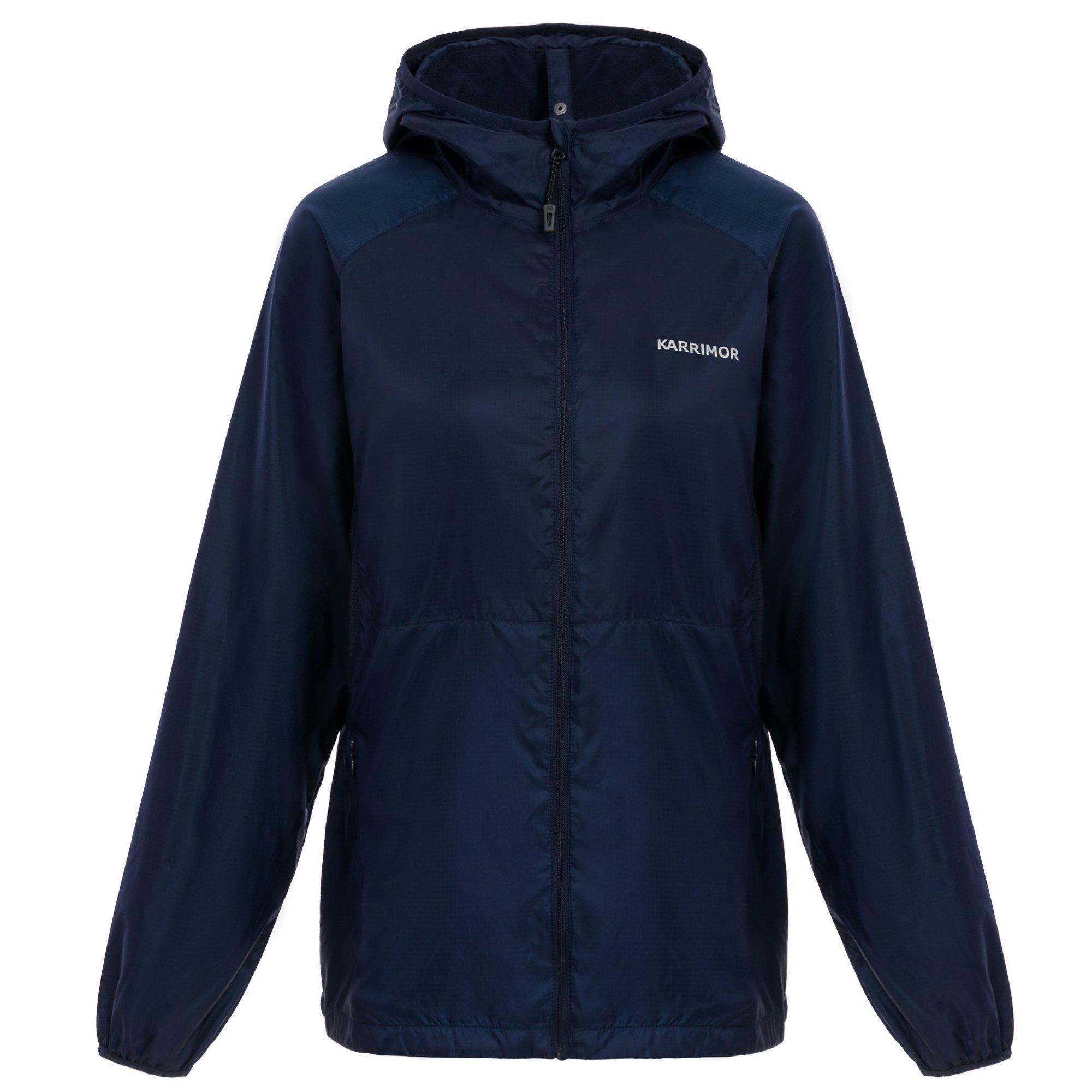 Karrimor Lightweight Hooded Long Sleeve Softshell Jacket leverer essentiel beskyttelse med praktisk design. Den har en blød børstet inderside for varme og mesh-paneler under armene for åndbarhed, denne regular-fit jakke tilbyder komfort og funktionalitet til daglige udendørs aktiviteter.