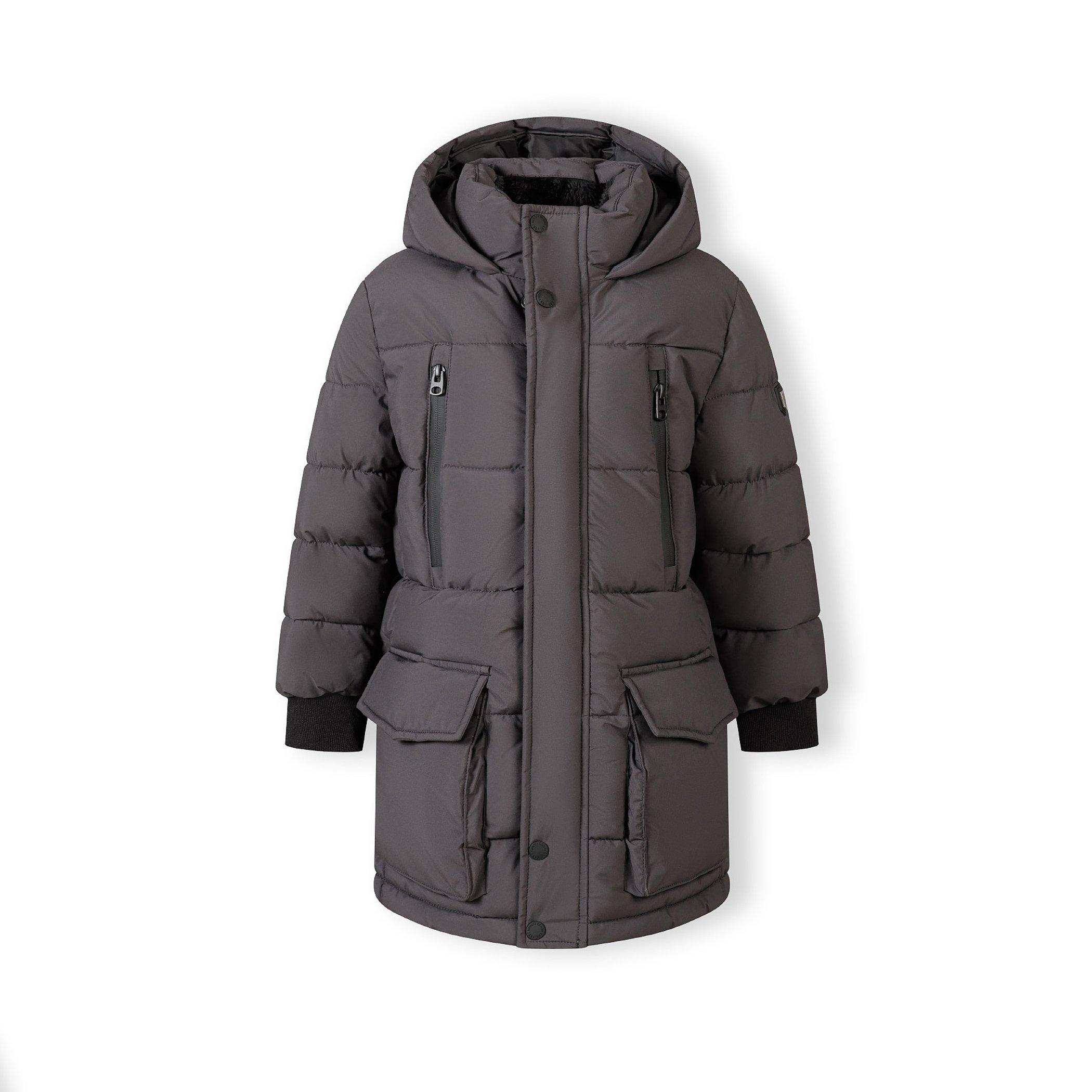 Minoti Boys long padded coat with hood and snap details grey