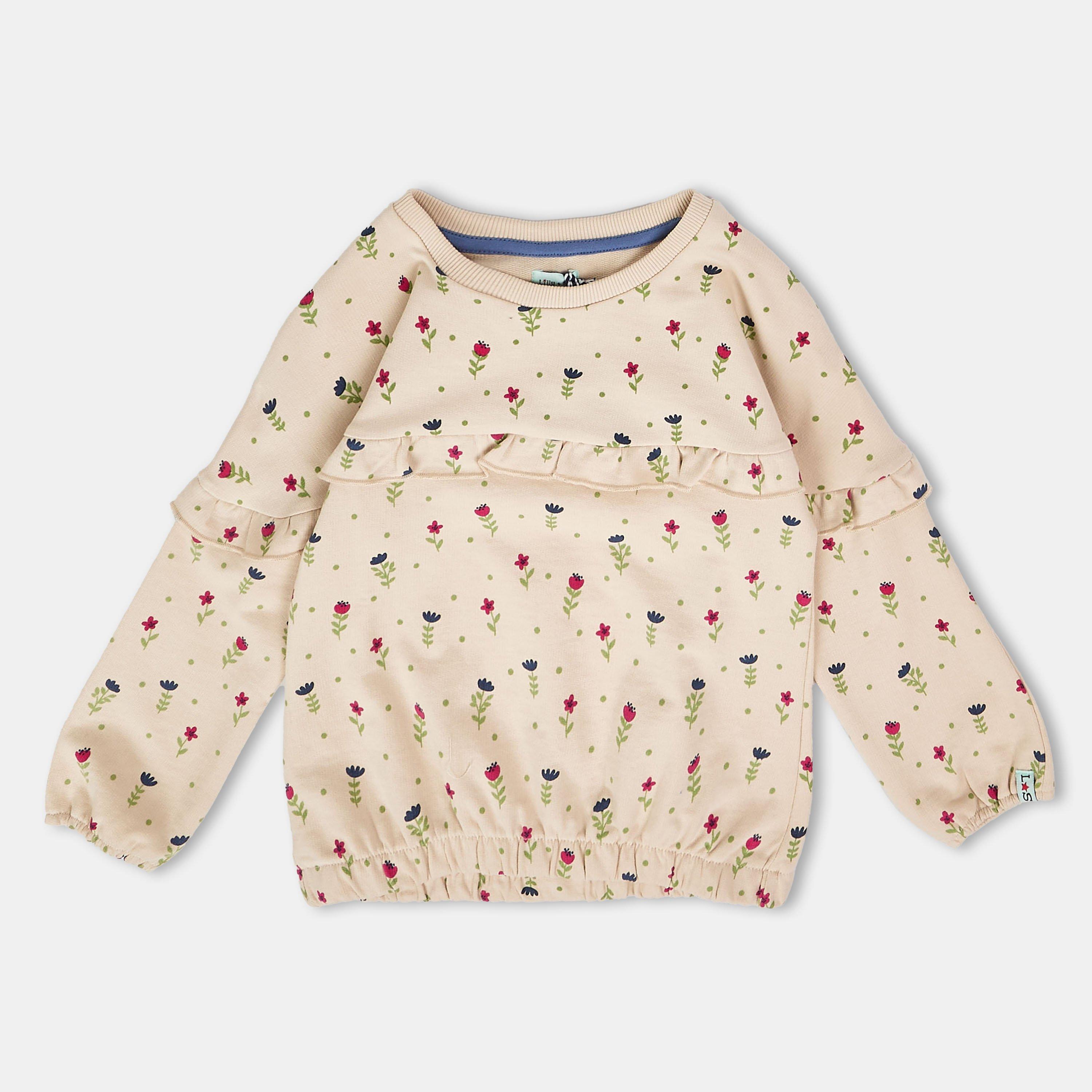 Lilly og Sids Børns Blomster Crew-Neck Sweatshirt kombinerer et legende mønster med hverdagens komfort, og har en klassisk crew-neck halsudskæring samt blødt, behageligt stof til aktive unge garderober og voksende børn.
