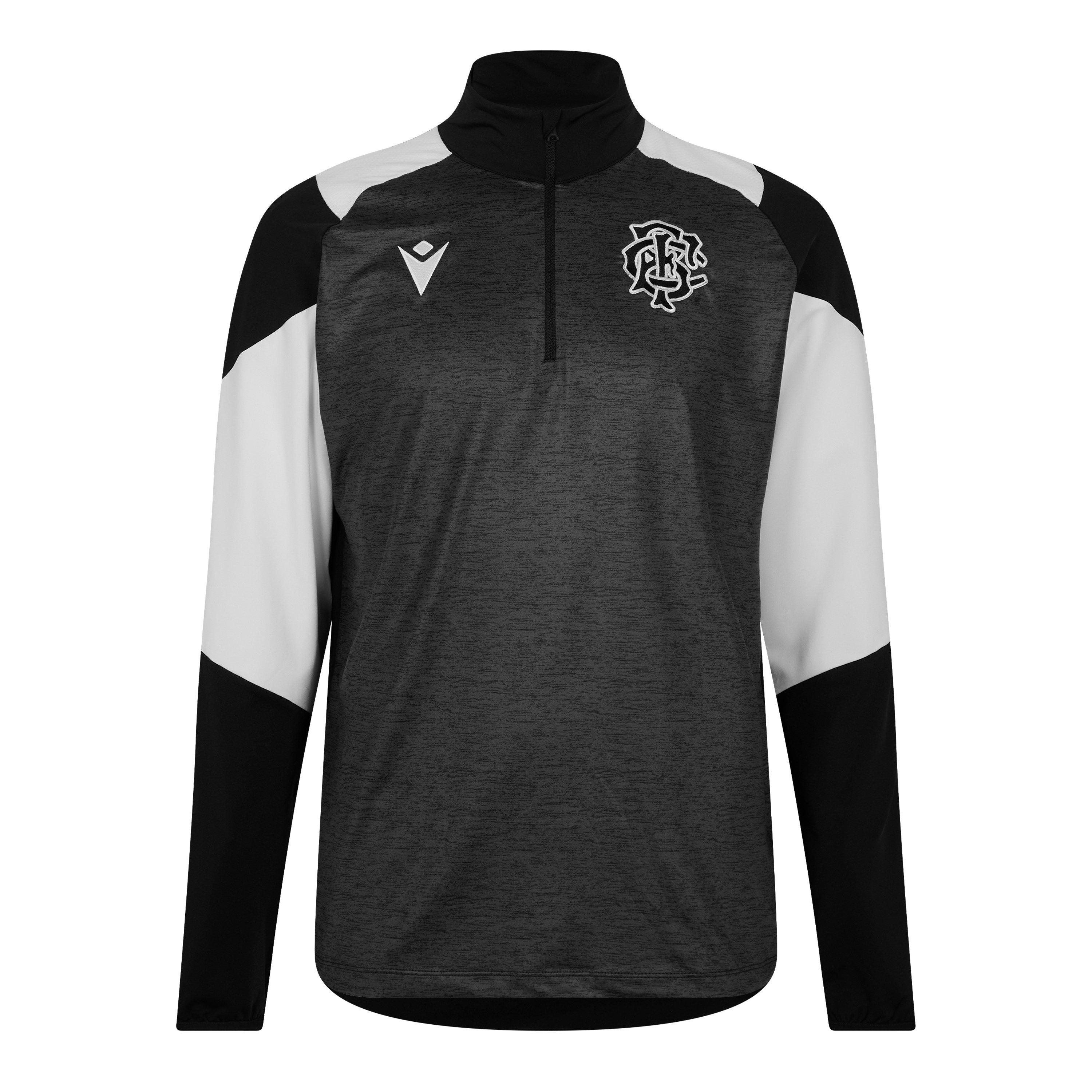Macron's Barbarians Quarter-Zip Replica Kortærmet T-Shirt leverer atletisk præcision med moderne stil. Denne t-shirt har en quarter-zip detalje, der tilbyder flere bære muligheder, mens den opretholder det autentiske udseende af Barbarians holddragt.