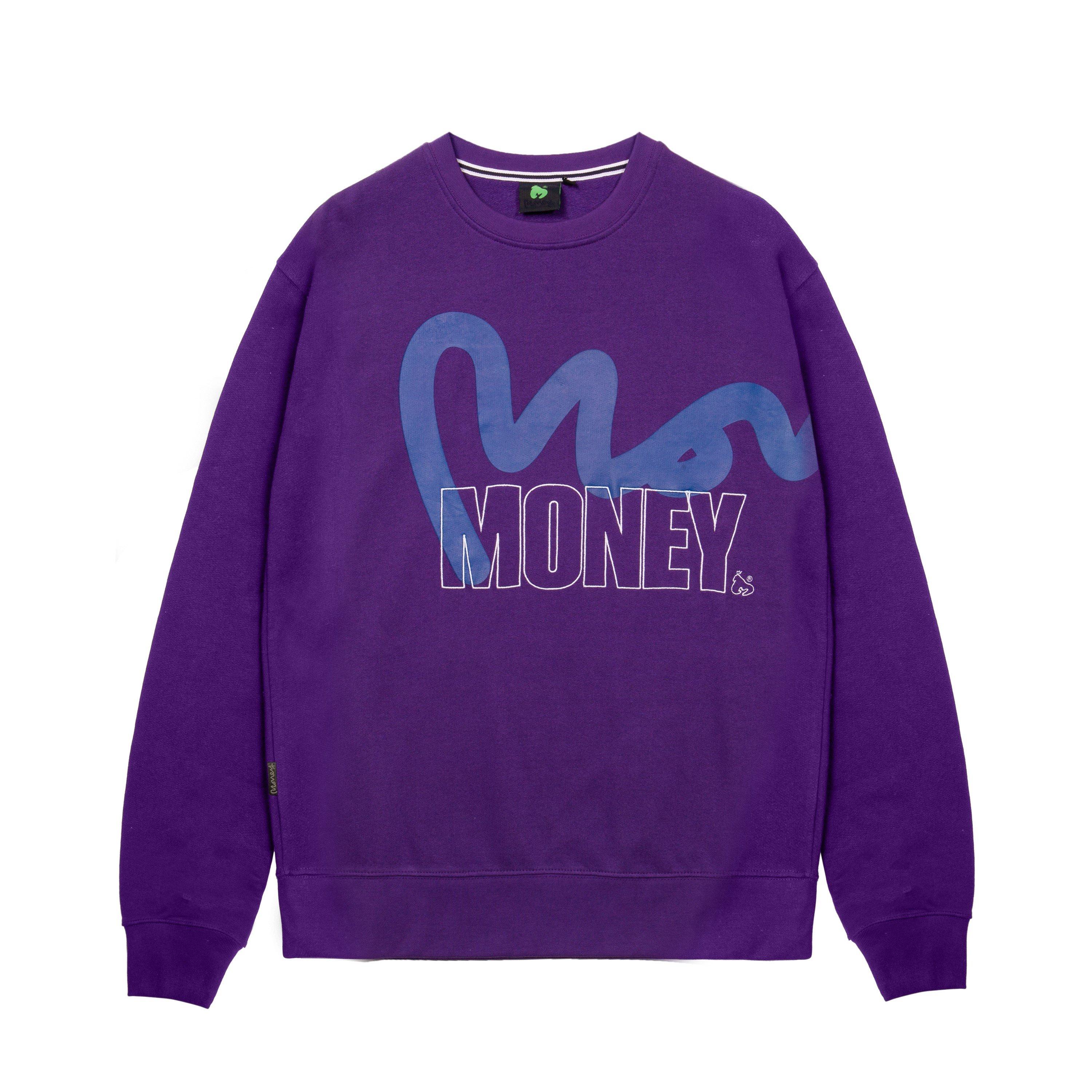 Money Stencil Block Crew laver et dristigt statement med vores Money Signature og blok outline kombinationslogo print foran, som fortsætter til bagsiden og skaber et stærkt branding touch. Fremstillet af 100% melange bomuld, er denne crew neck sweatshirt designet til både komfort og stil. Med en regular fit og en ribbet crew neck giver den et tidløst look med en blød følelse, perfekt til at tilføje et strejf af luksus til din afslappede garderobe. Dette stykke er en ideel blanding af komfort og iøjnefaldende stil, hvilket gør det til et must-have i enhver moderne kollektion.