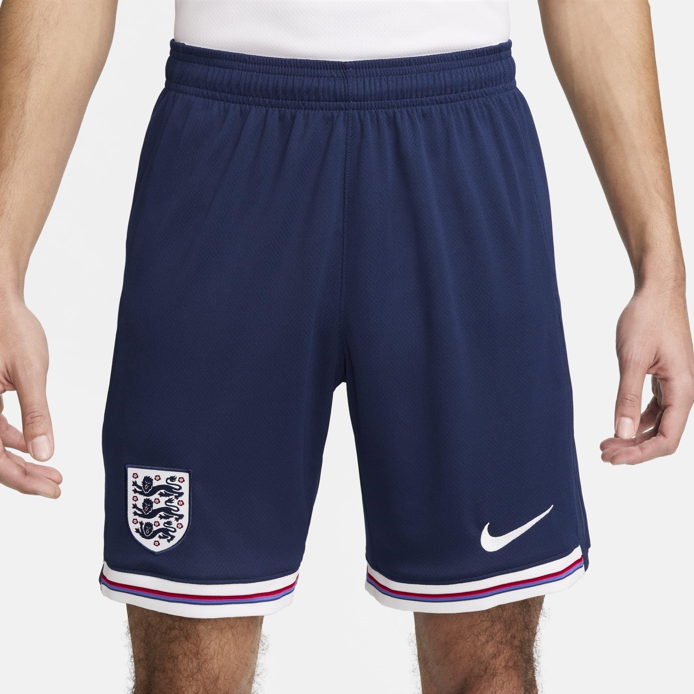 Nike præsenterer England Hjemme Shorts 2024, replikaerne af sættet, som det engelske herrefodboldhold bar under UEFA Euro 2024-mesterskabet. Fremstillet i teknisk polyester med Dri-FIT-teknologi, der fjerner sved fra huden, holder dette par dig tør og komfortabel hele dagen. Den elastiske talje giver en sikker og behagelig pasform, mens midt-øvre hemlines med sidelommer tilbyder et sporty look.