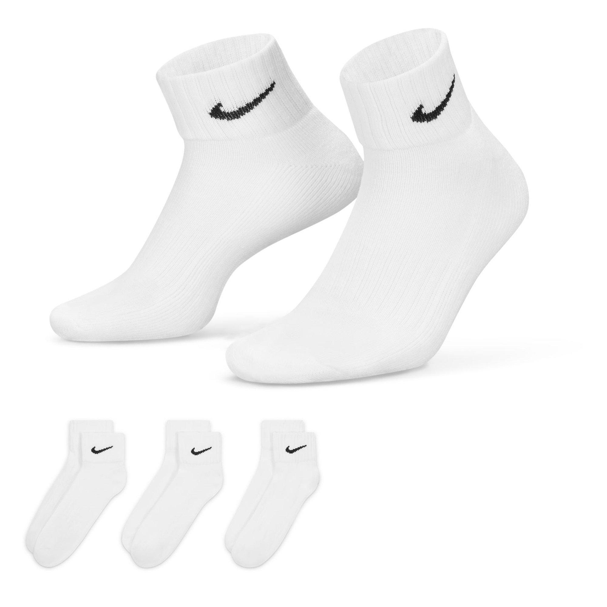 Hold dine fødder friske fra gym til gade med Nike Quarter Socks. Blødt bomuld med fugttransporterende teknologi hjælper med at holde dig tør og komfortabel, mens en smule stræk og svangstøtte giver en sikker pasform. En ribbet manchet holder dem på plads, og kvart længden sidder pænt over træneren. Afsluttet med Nike Swoosh for et rent, sportsklar look.