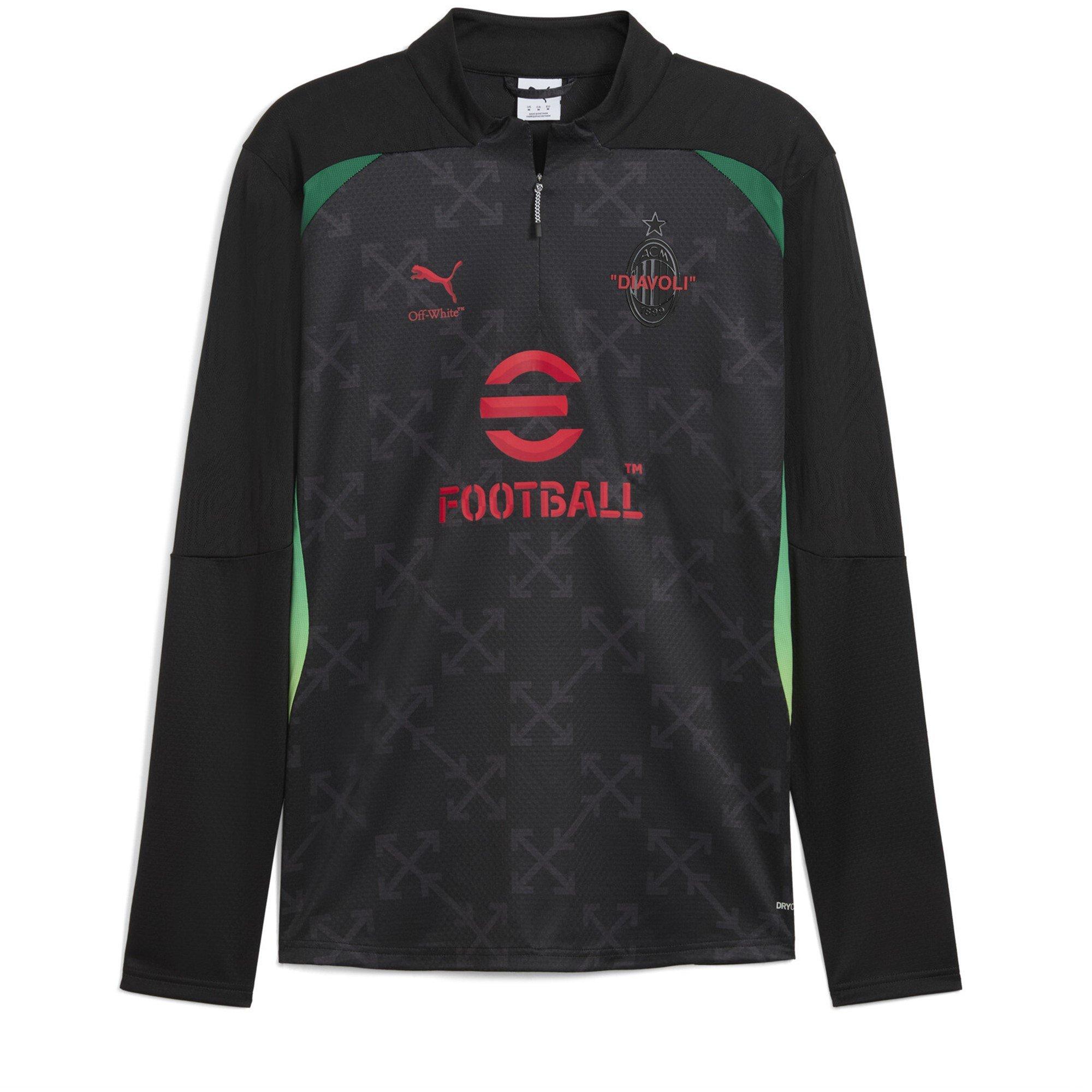 Træd ind i hjertet af fodbold med Puma AC Milan x Off White Pre Match Drill Top. Udstyret med det karakteristiske Puma-logo, der giver et symbol på sporty stil og præstation. Fra elektrificerende kampdage til åndfulde træningssessioner er denne fodbold quarter zip den perfekte sportslige følgesvend, når du støtter holdet.