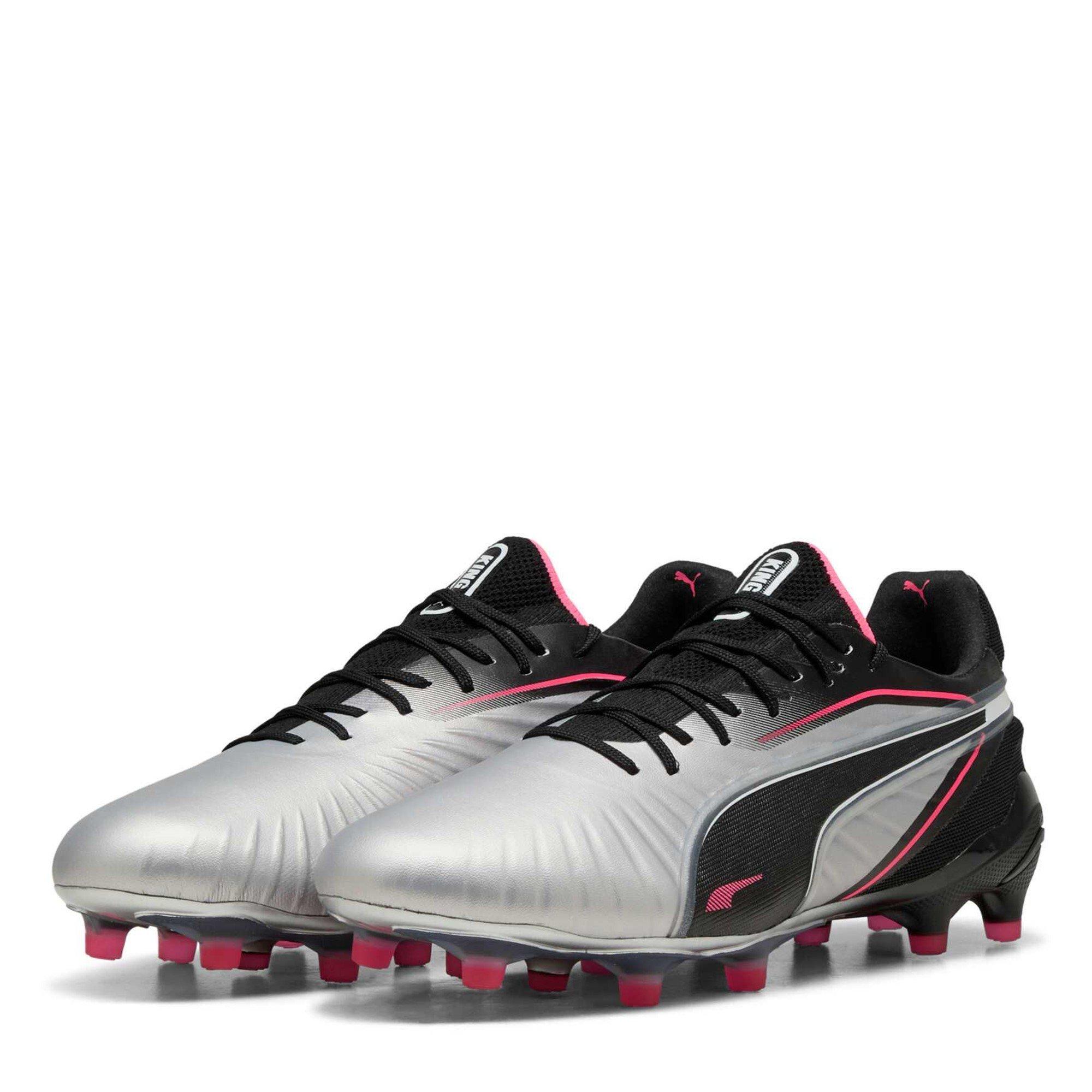 Vis dine færdigheder med stil med Pumas King Ultimate.1 Firm Ground fodboldstøvler. Med det ikoniske logo på tungen, der viser en signaturfinish. Perfekt til intense kampe eller krævende træningssessioner, er disse støvler skabt til ægte fodboldentusiaster.
