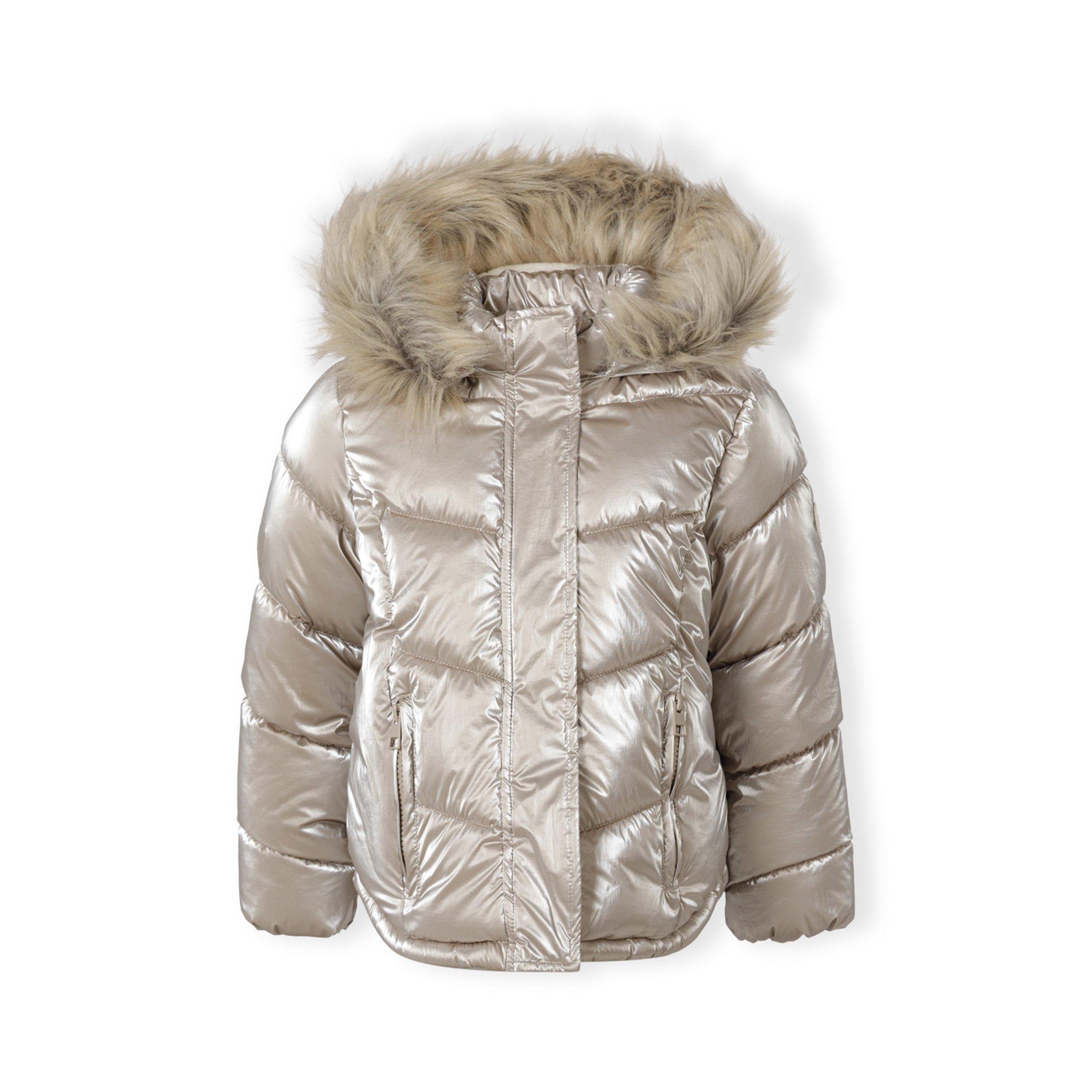 Girls winter jacket metallic finish beige