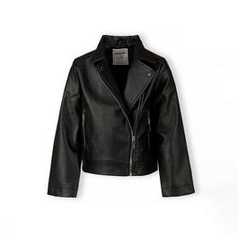 Kids' Faux Leather Long Sleeve Oversized Fit Bomber Jacket