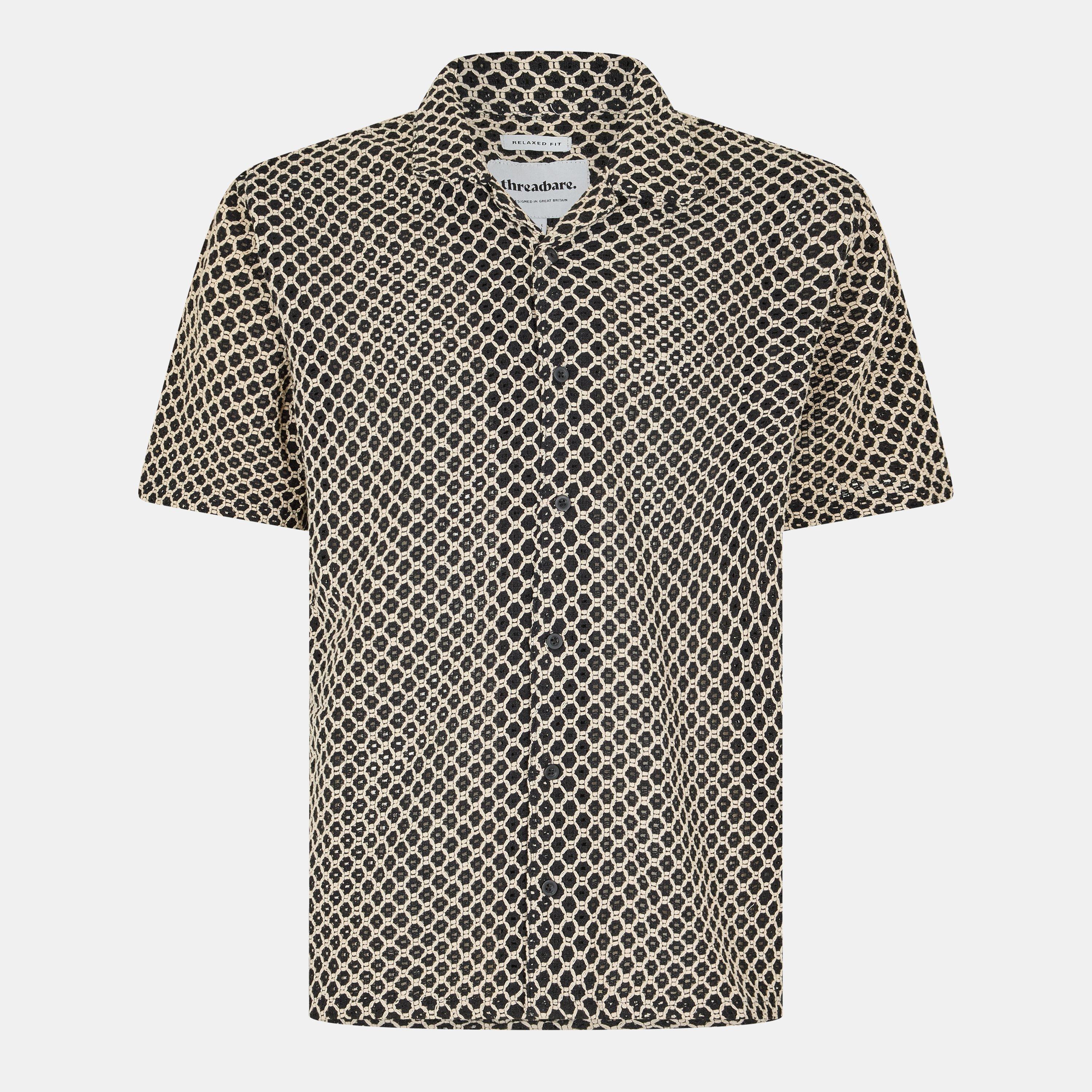 Threadbare's herre Drumacre kortærmet mønstret skjorte bringer visuel interesse gennem mønsterarbejde, balanceret med en afslappet form, der overgår mellem afslappede omgivelser og smartere lejligheder.