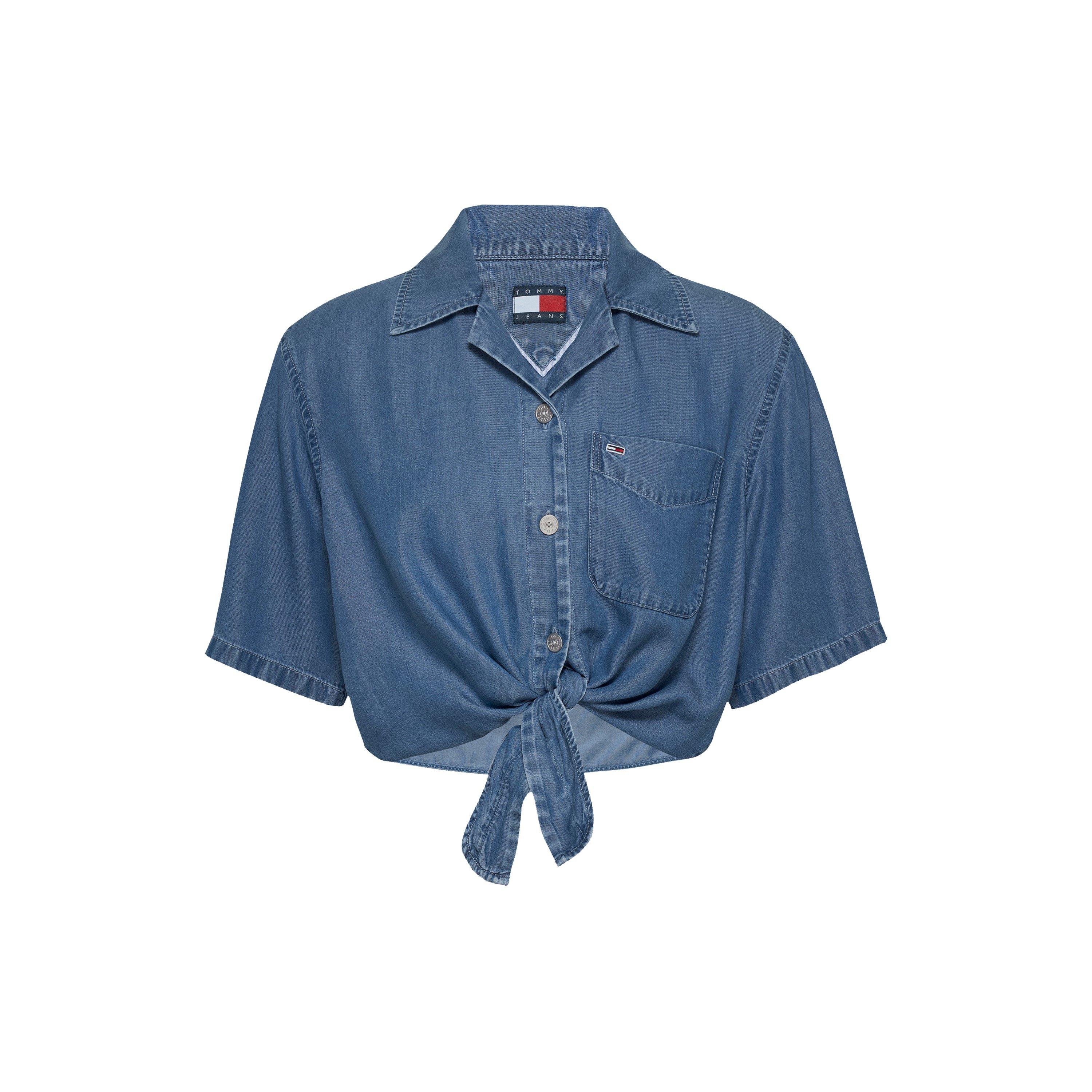 Tommy Jeans' Chambray Tie Kortærmet Ensfarvet Skjorte tilbyder en afslappet følelse med klassisk denimstil. Det lette, åndbare stof har en bindedetalje for en flatterende pasform.