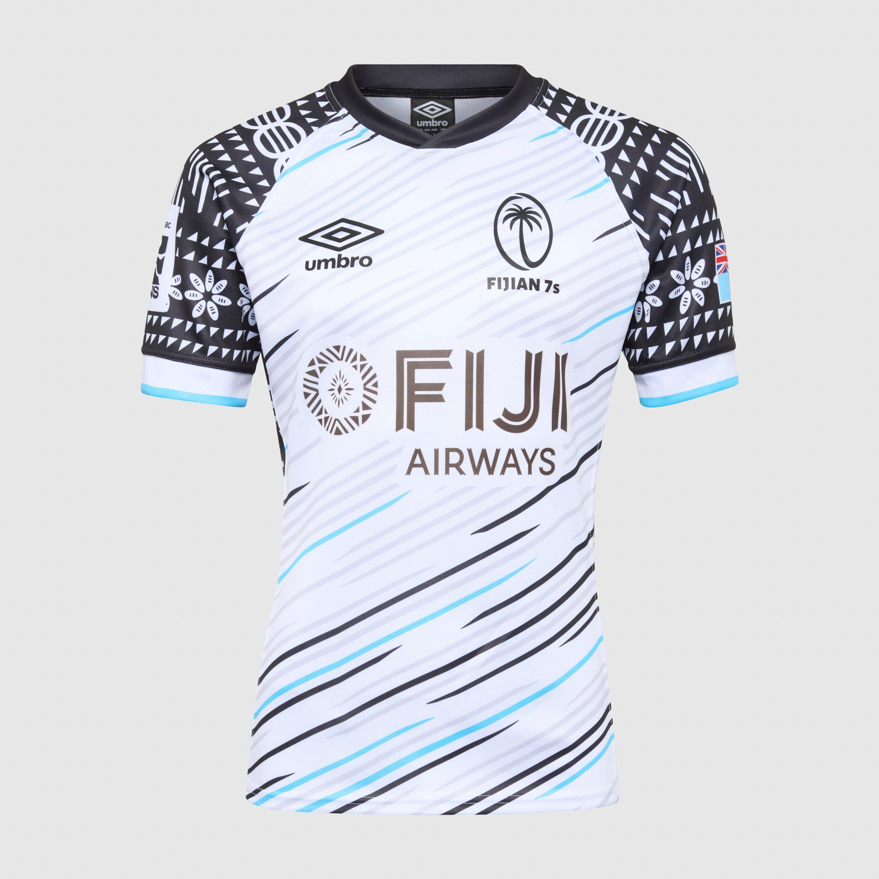 Udsend den Flying Fijians' ånd i Umbro Fiji 7s Replica Home Shirt 2025/26. Skåret i en slim fit for en atletisk silhuet, har den intrikate ærmemotiver inspireret af traditionel fijiansk masi-kunst. Sublimerede logoer og et 3D-gummimærke fuldender skjorten, perfekt til kampdagens støtte, højintensiv træning eller afslappet stil med mening.
